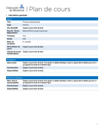 Accueil / Études / Programmes de pharmacologie / Liste des cours en pharmacologie / PHL2100_H26